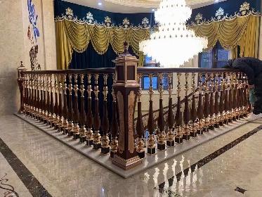 歐式銅欄桿1、設計風格經典與優(yōu)雅:銅欄桿通常采用經典的歐式設計,包含復雜的花紋和雕刻,增添了建筑的文 ..